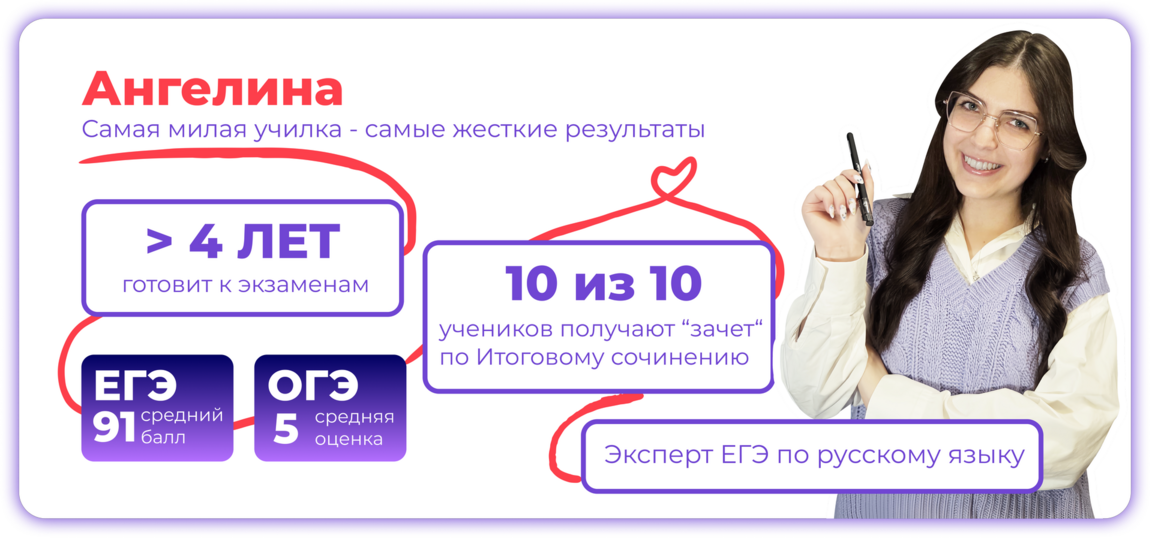 | Преподаватель не просто оценит твои сочинения в соответствии с официальными критериями, но и пояснит, в чем заключались ошибки, а затем даст советы и рекомендации, как избежать данных ошибок. | |||